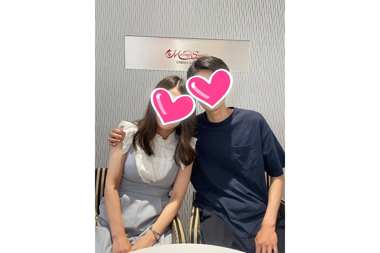 成婚退会からわずか10日後、すぐに入籍を済まされ、ご夫婦としてご来店くださいました。初めてのお見合いの日、お二人は“生活スタイルが似ている”と感じたそうです。